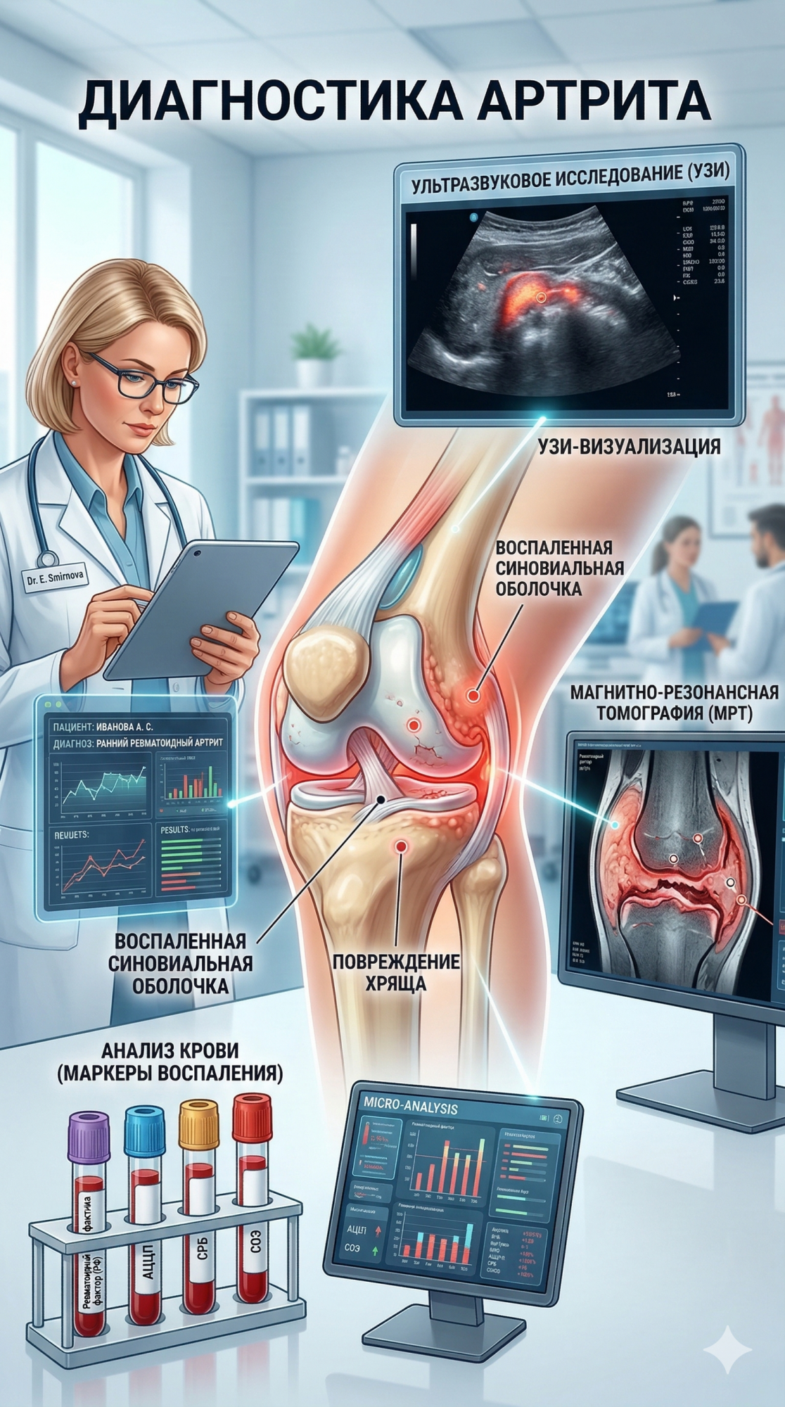 Современные методы диагностики артрита: анализы, УЗИ, МРТ — когда и какие исследования нужны