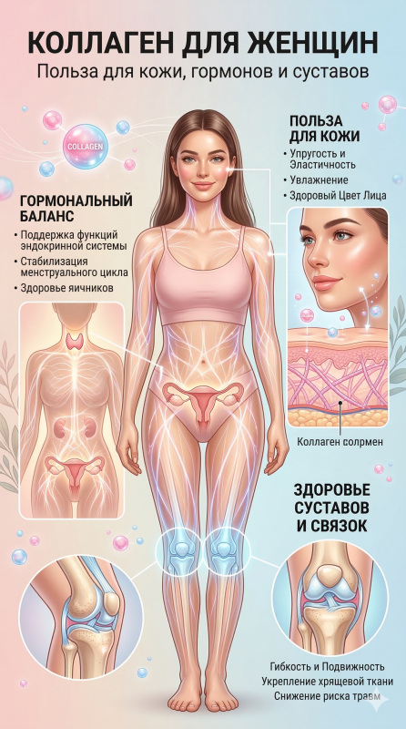 Фундаментальная роль структурных белков в антивозрастной нутрициологииВ современной превентивной медицине и нутрициологии концепция сохранения молодости и функционального долголетия претерпела значительные изменения. Если ранее фокус внимания был смещен исключительно на внешние косметические процедуры, то сегодня научное сообщество единогласно признает первостепенную важность поддержки организма изнутри. Ключевым элементом этой поддержки выступают структурные белки, составляющие основу внеклеточного матрикса. Среди всех белков человеческого тела именно коллагеновые волокна занимают доминирующее положение, составляя около тридцати процентов от общей белковой массы. Этот уникальный по своему аминокислотному профилю гликопротеин формирует невидимый, но невероятно прочный каркас, который удерживает вместе ткани, органы и системы. Коллаген для женщин представляет собой не просто популярную биологически активную добавку, а критически важный нутрицевтический инструмент, способный модулировать сложнейшие физиологические процессы, начиная от регенерации дермы и заканчивая тонкой настройкой эндокринного баланса.
