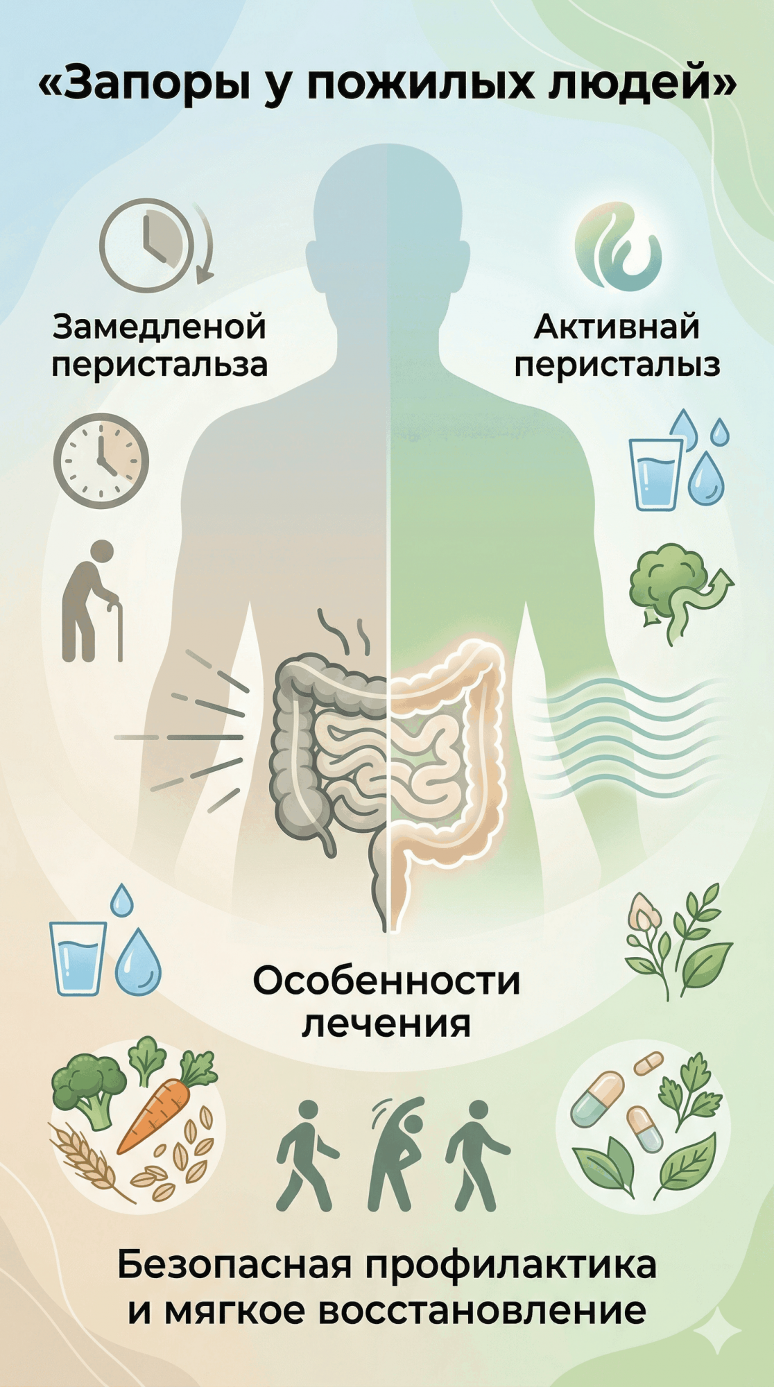 Совмещение этой научно обоснованной, трехэтапной терапевтической схемы с базовой модификацией образа жизни — адекватным питьевым режимом, посильной физической активностью и включением в ежедневный рацион достаточного количества термически обработанных пищевых волокон — позволяет не просто временно устранить тягостный симптом констипации. Эта комплексная стратегия способна кардинально разорвать порочный круг системной интоксикации, существенно улучшить психоэмоциональный фон, повысить качество и продолжительность жизни пациентов старшего возраста, возвращая им утраченный комфорт и физиологическую норму функционирования пищеварительной системы.